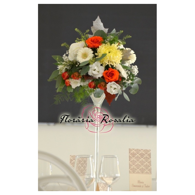 Pretul afisat contine doar aranjamentul floral . Pretul de inchirire al vazelor este zero in cazul in care comandati aranjamentul floral.